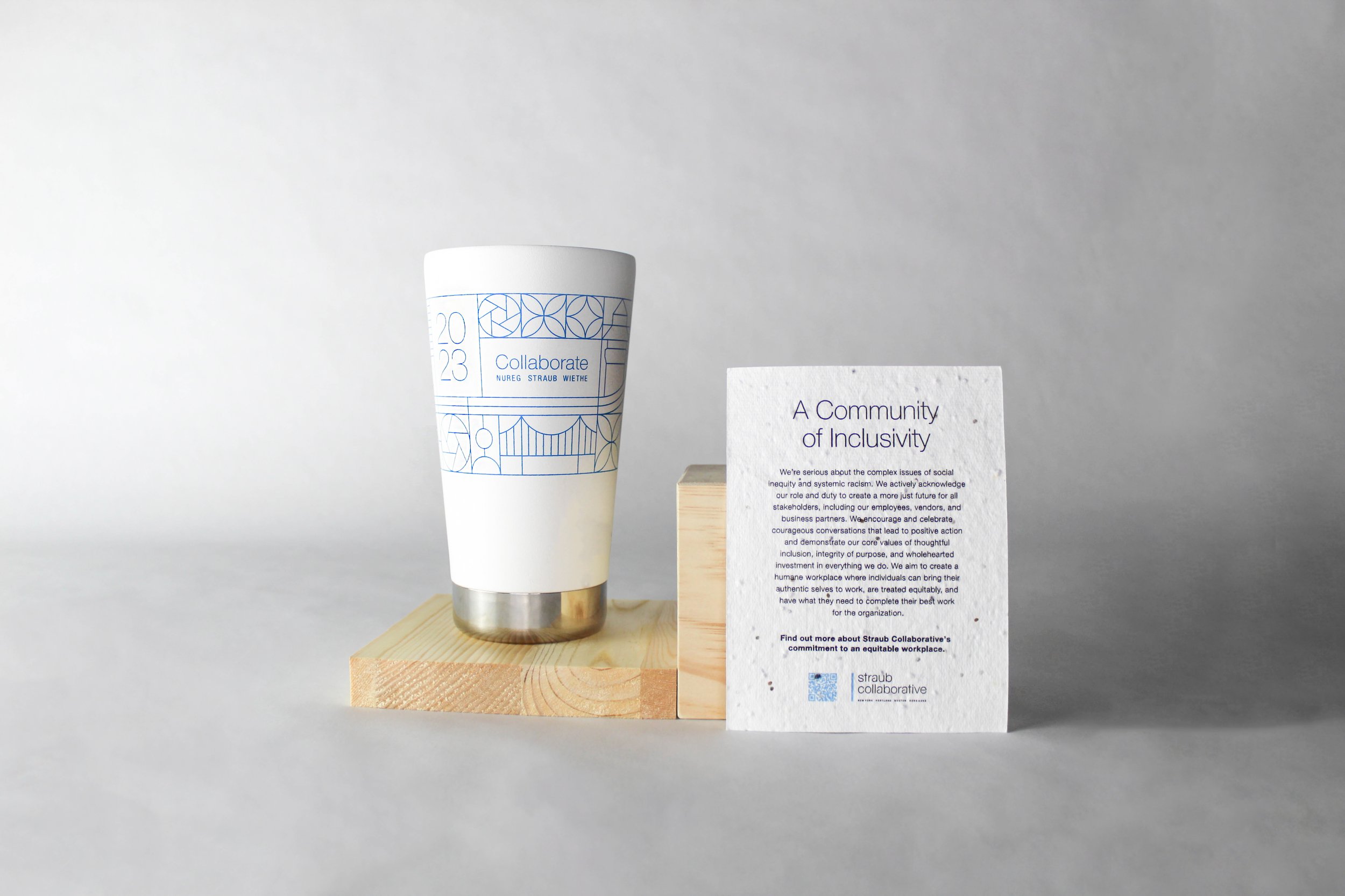Straub Collaborative is one of three studios that make-up a team of content creators who work with one of the leading athletic shoe/apparel companies in the world. Twice a year, they travel to one location for a large workshop/summit where they plan for the coming season. Straub hosted the FW2023 workshop in the summer of 2022. Aside from technical planning, they wanted to establish a theme of sustainability and inclusion. In preparation for this, we partnered with Straub to brand the workshop. Focusing on the theme, I created a graphic that represents each studio’s home city, nature, and connection. We carried out this design across various pieces of collateral such as tumblers, inserts, tote bags, pouches, keychains, coasters, notebooks, presentations and signage. My team handled the vendor communication/production of the printed swag.